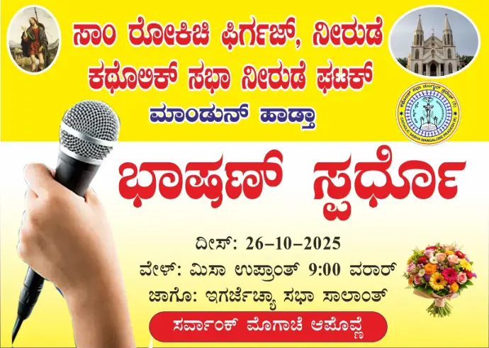 ಮುಂಗ್ಲರಾ: | 7:00 ವೊರಾರ್ ಮೀಸ್ ಇಂಗ್ಲೀಷ್ ಭಾಶೆಂತ್ ಸೇಕ್ರೆಟ್ ಹಾರ್ಟ್ ಕಾನ್ವೆಂಟಾoತ್ |